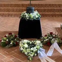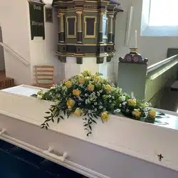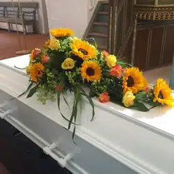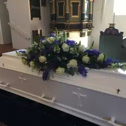 Hvis ikke der ønskes en specifik blomsterbutik, bruger vi som udgangspunkt en fra lokalområdet i Holsted, Vejen, Varde, Bramming eller Esbjerg, alt efter hvor begravelsen afholdes.