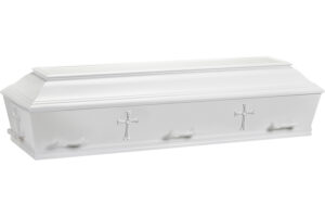 Vores kister er leveret af Tommerup Heilskov Kistefabrik, der gerne vil værne om vores nordiske begravelseskultur. Derfor er kisterne hovedsagligt i hvid farve, uskyldens farve, der ofte knyttes til barnedåb, konfirmation, bryllup og begravelse. Hvid går godt i spænd med de kalkede vægge i kirken, og giver et godt sammenspil med de mere farverige blomster og dekorationer.
